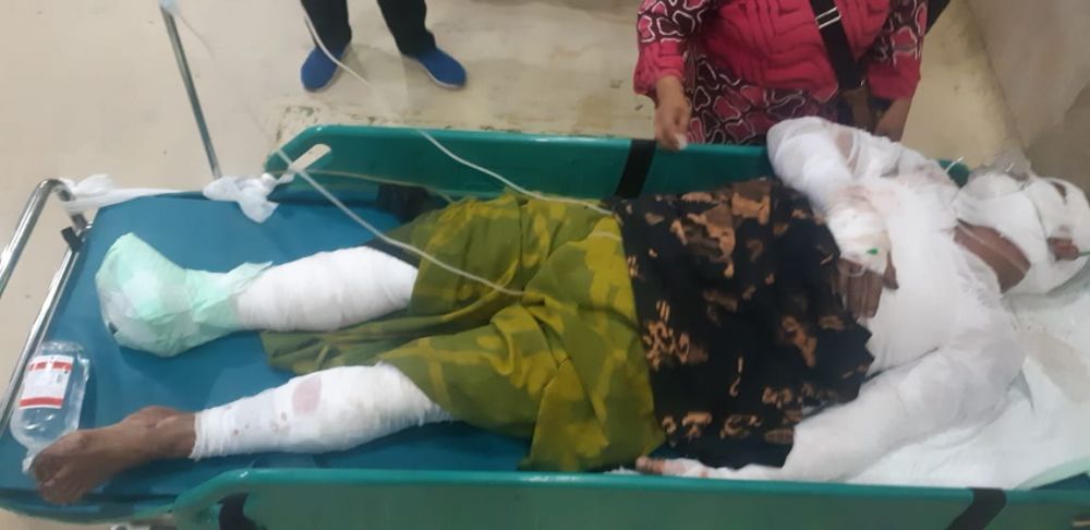 Sunjoko yang menjadi korban mengalami luka di beberapa bagian tubuh yaitu telapak kaki kanan hancur dan luka bakar sekujur badan. Saat ini korban dirawat di RSUD R. Sudarsono Kota Pasuruan.