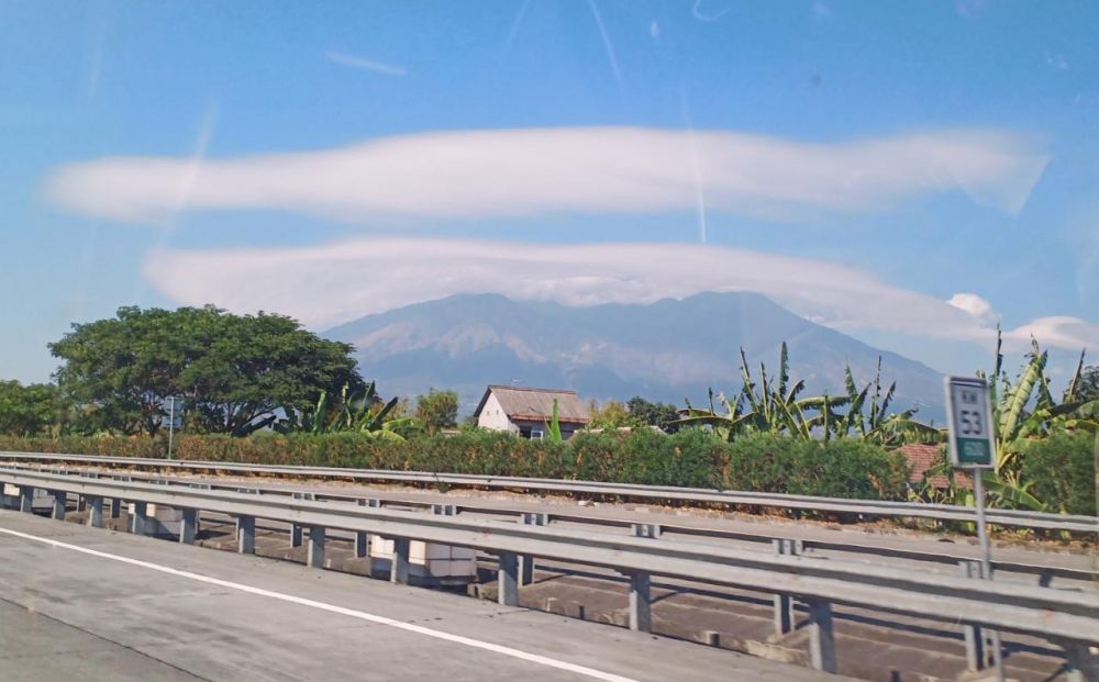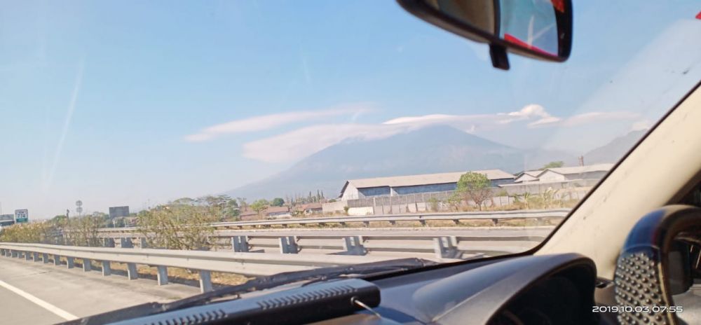 Terlihat dari Jalan Tol Sidoarjo Malang terlihat cukup menakjubkan, meski hutan di Gunung Welirang sempat mengalami kebakaran, Kamis (3/10/2019) pagi.