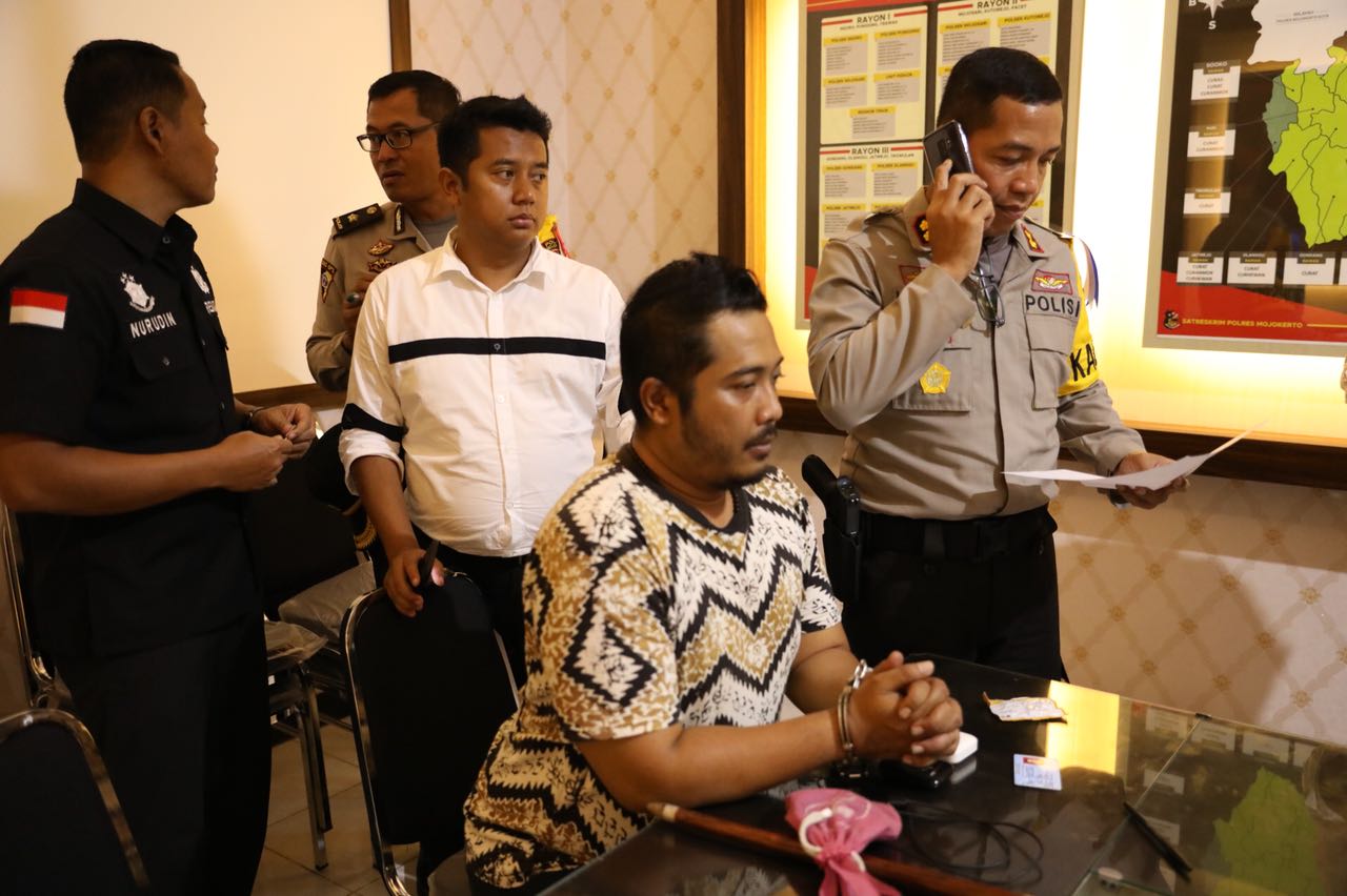 Setelah ditangkap anggota Reskrim Polres Mojokerto, Rendra langsung dibawa ke Direktorat Reserse Kriminal Khusus (Ditreskrimsus) Polda Jatim. Inilah foto-foto yang dilansir Humas Polda Jatim.