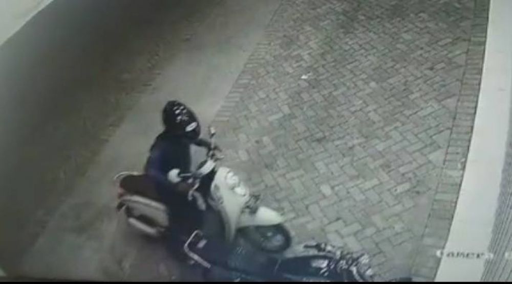 Dari rekaman CCTV, pelaku yang memakai jaket jeans warna biru, celana jeans hitam dan helm hitam membutuhkan waktu 10 detik untuk membawa sepeda motor warna krem itu.