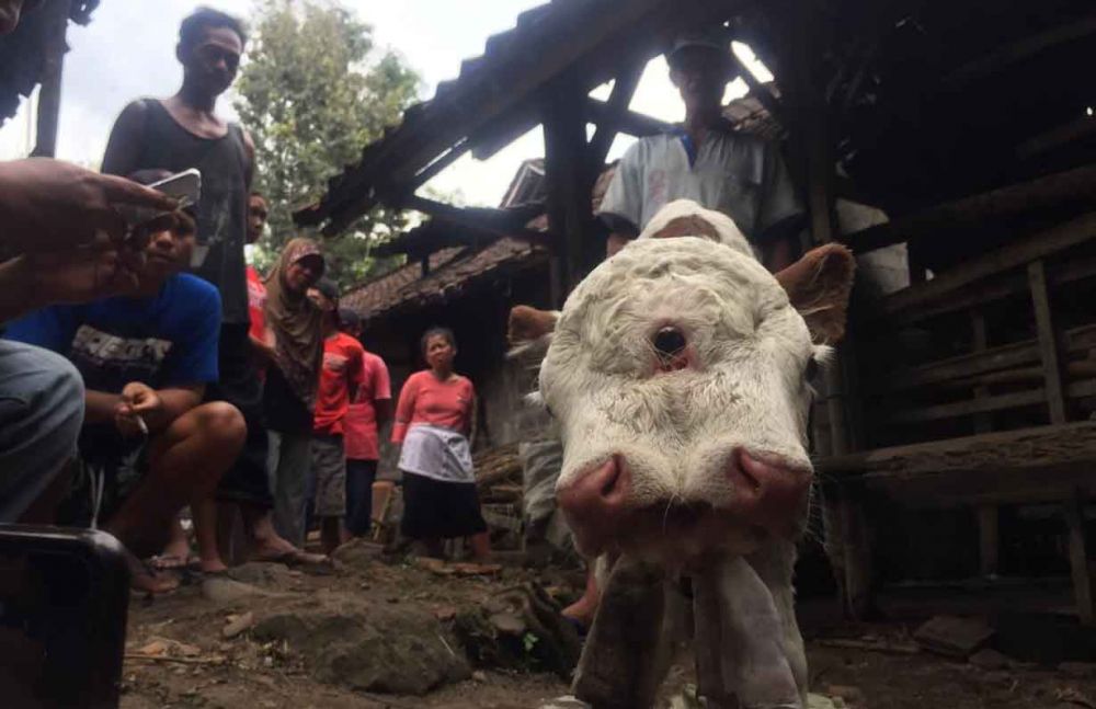 Anakan sapi tersebut yang yang lahir pada Kamis (6/2/2020) sekitar pukul 06.00 Wib memiliki dua kepala, dua mulut, dan dua lidah serta tiga mata.