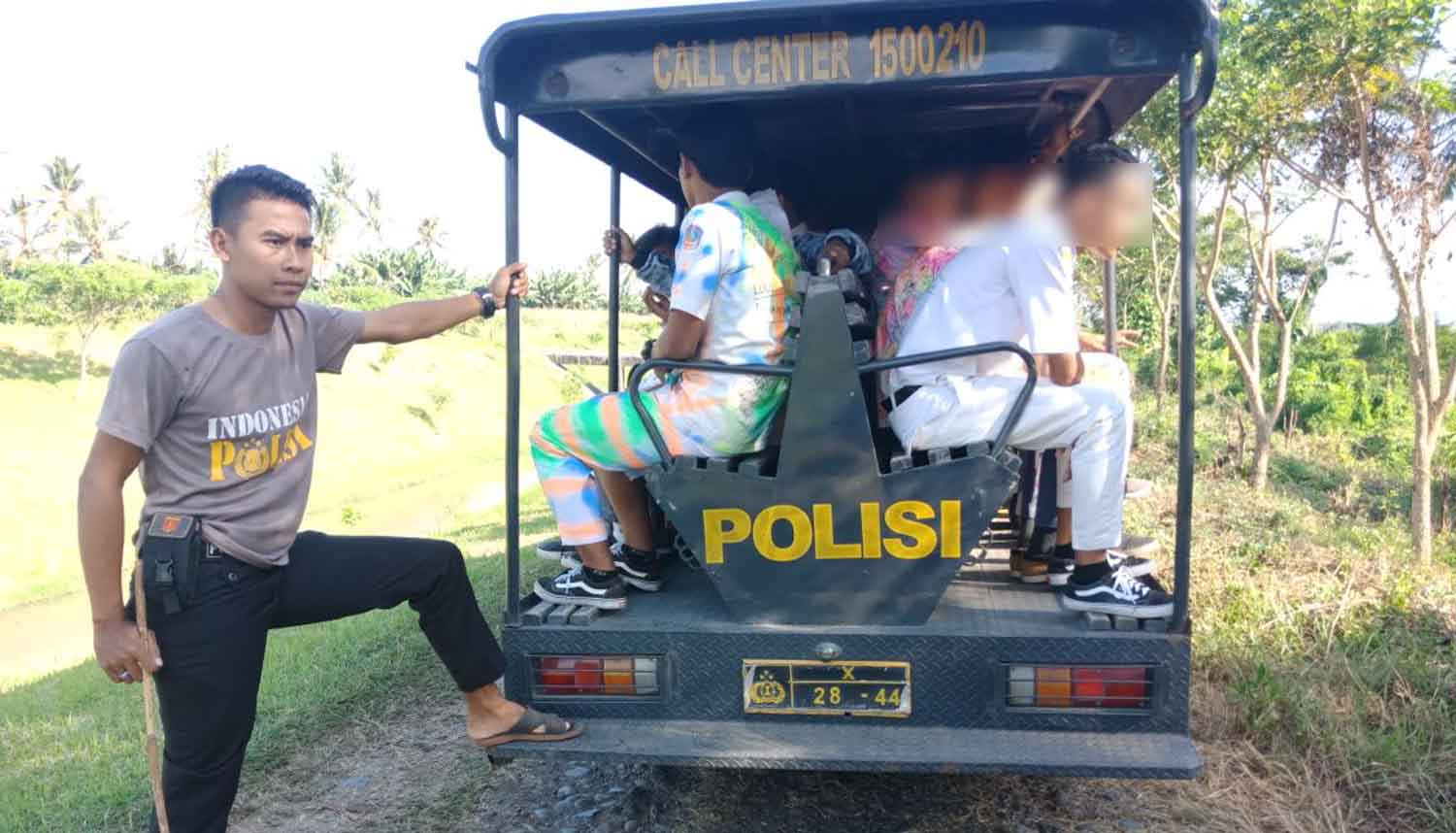 Siswa SMA yang kedapatan pesta miras diangkut menggunakan mobil patroli polisi.