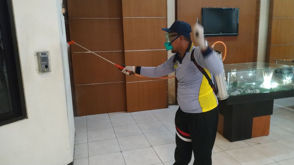 Dalam apel pagi bersama Forkopimda dan seluruh Kepala OPD dan ASN Pemkab Gresik, Bupati Sambari meminta tim reaksi cepat (TRC) Dinas Kesehatan (Dinkes) untuk melakukan penyemprotan disinfektan pada semua kantor.