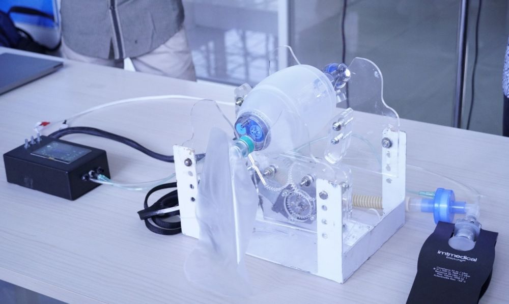 Robot ini berfungsi sebagai alat bantu napas bagi penderita Covid-19 yang mengalami gangguan pada sistem pernapasannya.