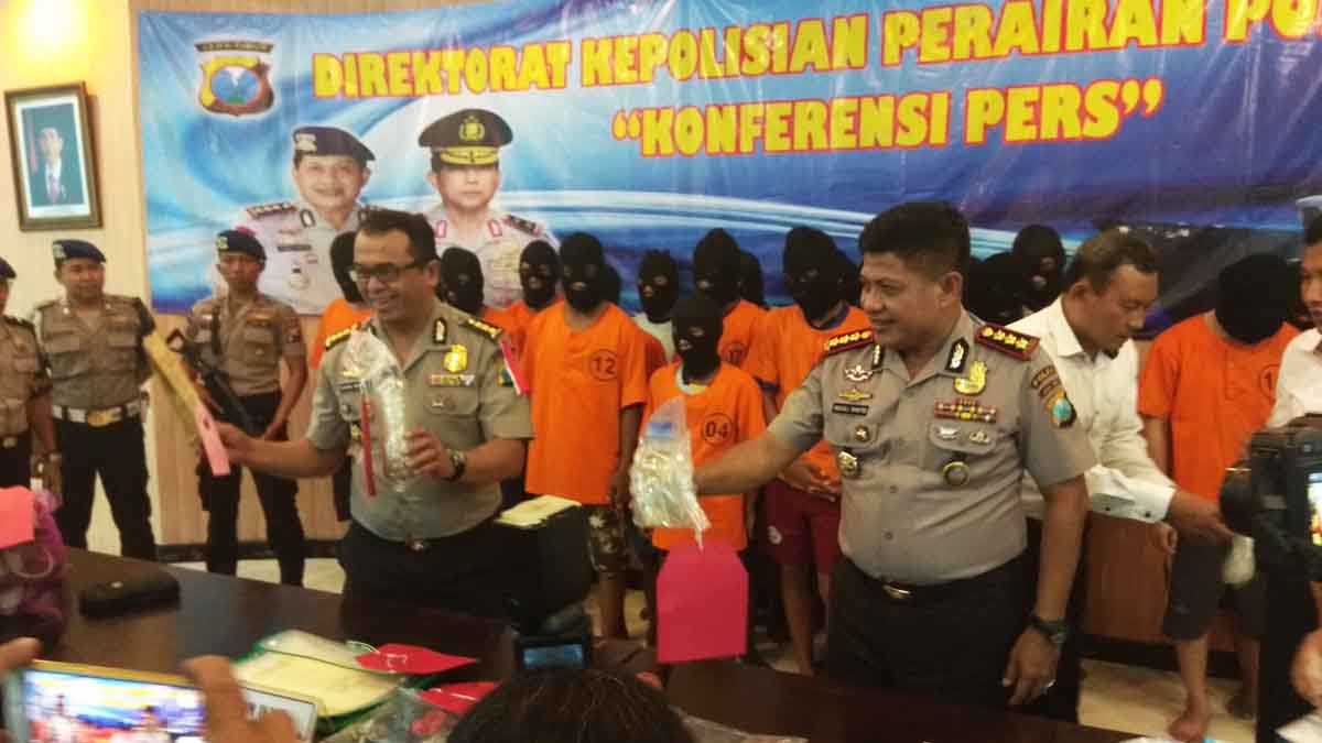 "Mereka melanggar pasal 92 junto pasal 100 Undang-undang No. 45 tahun 2009 perubahan atas Undang-undang No.31 thn 2004 tentang perikanan dengan ancama hukuman 8 tahun, serta denda Rp 1,5 milyar," kata Frans Barung, saat presconfrance di kantor Ditpolair Jalan Perak Utara Surabaya, Senin (7/5/2018).