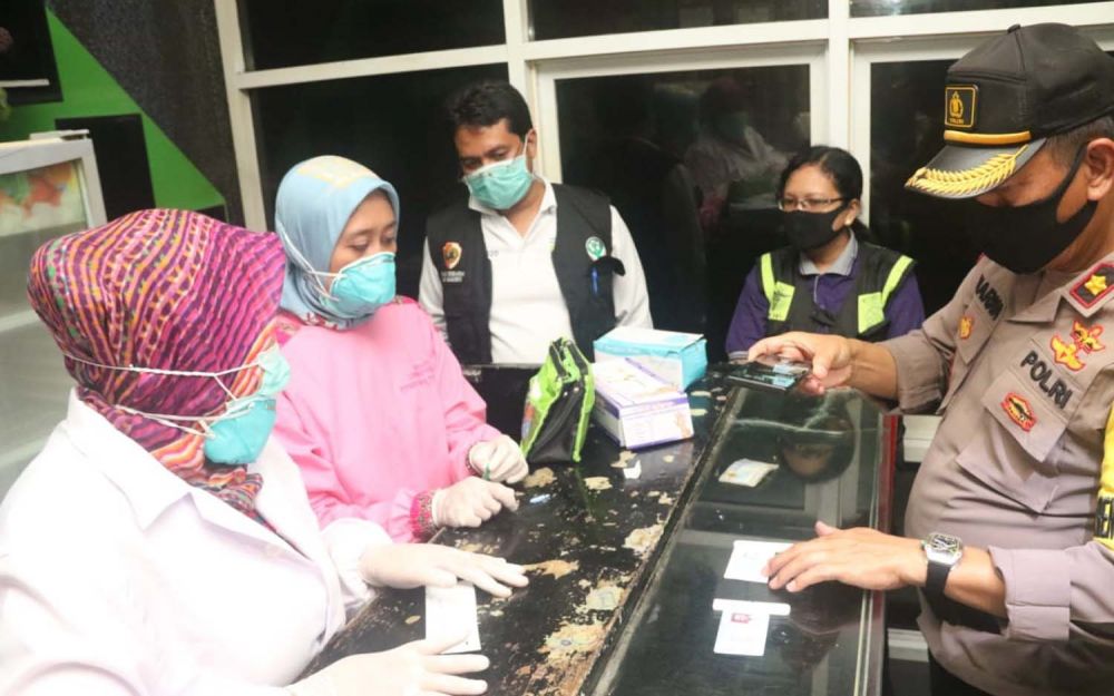 jatimnow.com - Petugas gabungan dari Polres Mojokerto, Kodim 0815, dinas kesehatan dan Satpol PP melakukan rapid test on the spot kepada sejumlah remaja yang masih nekat nongkrong di tengah Virus Corona (Covid-19) mewabah.