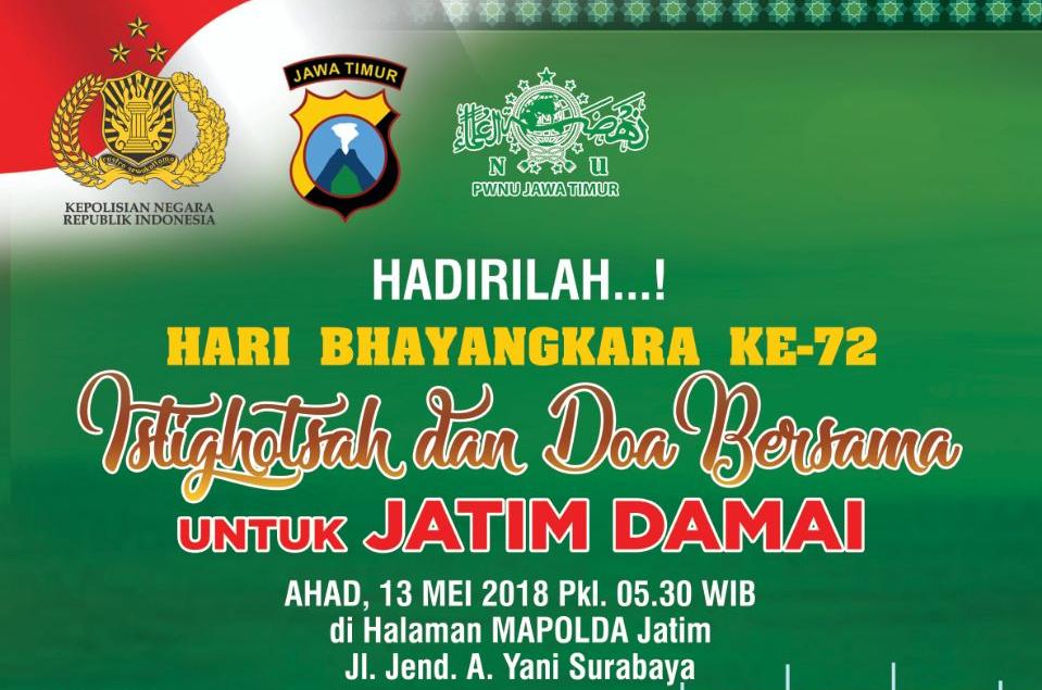 Sekedar diketahui, gelaran istighosah dan doa bersama yang dilaksanakan Polda Jatim ini, digagas oleh Kapolda Jatim, Irjen Pol Machfud Arifin. Acara ini dilakukan untuk Jawa Timur dan Indonesia yang damai.