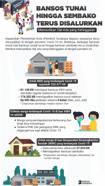 Bantuan ini diberikan kepada 174.332 KK (Kartu Keluarga) yang masuk dalam data MBR. Adapun metode pencairannya melalui PT Pos yang sudah bekerjasama dengan Kemensos. Nantinya, data 174.332 KK itu diberikan ke PT Pos yang tersebar di Kota Surabaya.