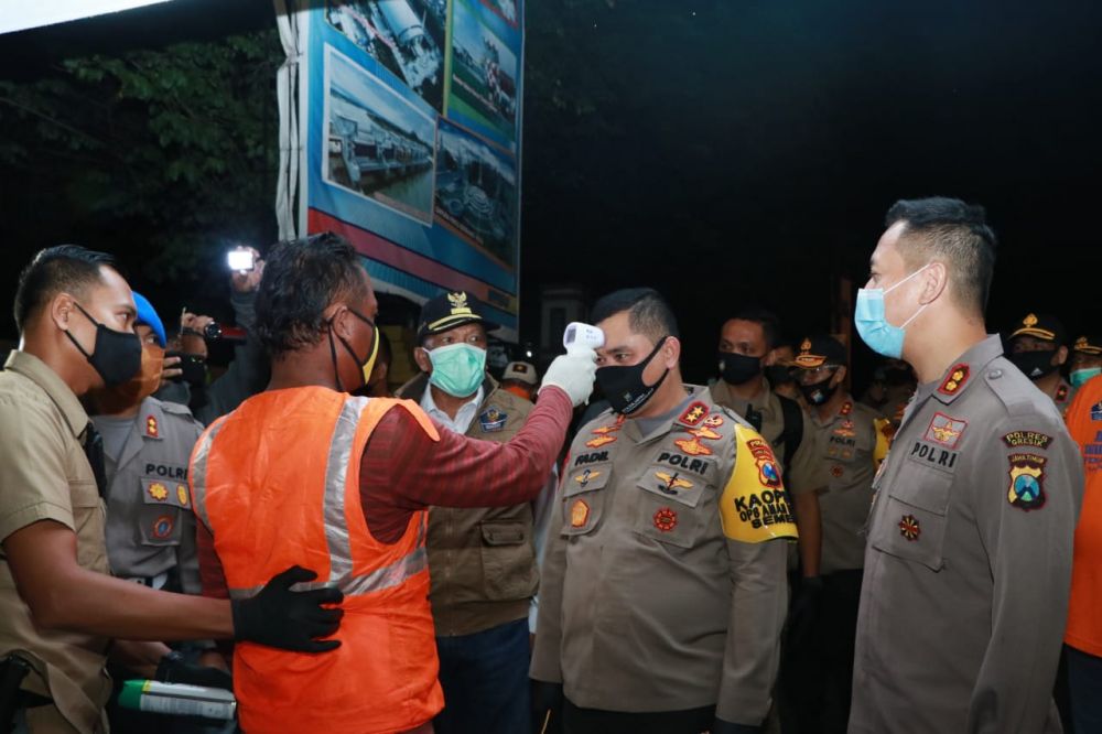 "Pemeriksaan suhu badan hingga diwajibkan mengisi buku tamu dengan maksud mengetahui keperluannya atau tujuan ke rumah siapa," ungkapnya didampingi Wakapolda Jatim Irjen Pol . Djamaludin.