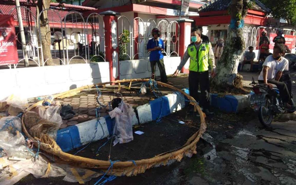 Kapolsek Ponorogo Kota, AKP Haryo Kusbintoro mengatakan peristiwa itu terjadi pukul 05.15 Wib. Balon udara yang tersangkut kabel listrik itu masih ada api dan petasan yang menyala.