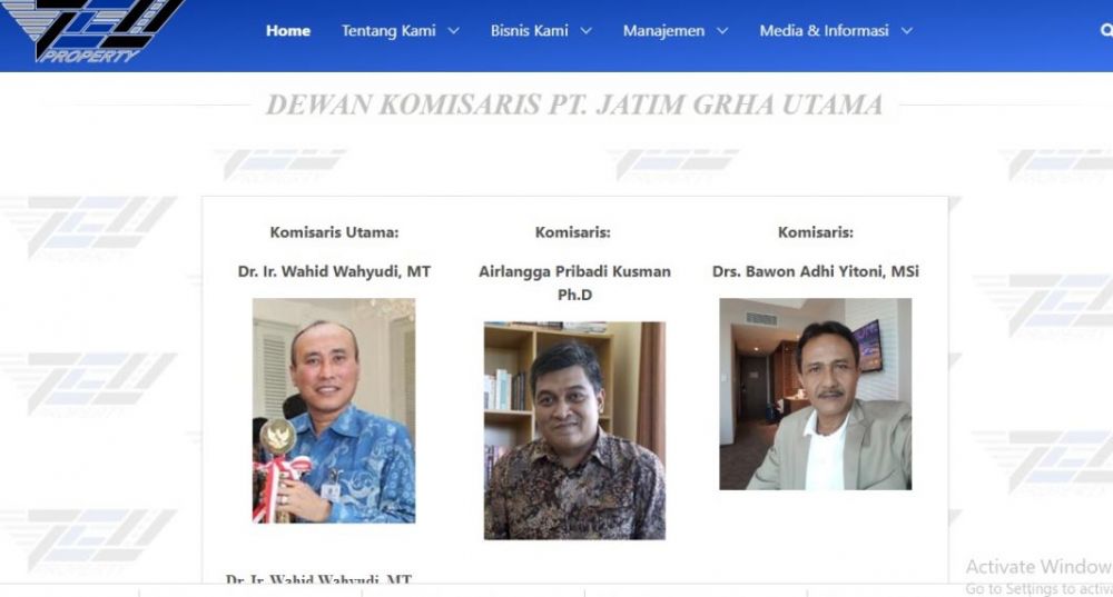 Kemudian PT Jatim Graha Utama (JGU). Penelusuran jatimnow.com, Jumat (7/8/2020) juga mendapati ada nama Kepala Dinas Pendidikan Wahid Wahyudi menjadi komisaris utama perusahaan yang bergerak di bidang properti itu.