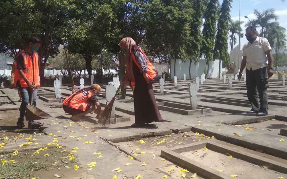 Keenam pelanggar terdiri dari lima laki-laki dan satu perempuan itu diberi sanksi sosial membersihkan Taman Makam Pahlawan (TMP).