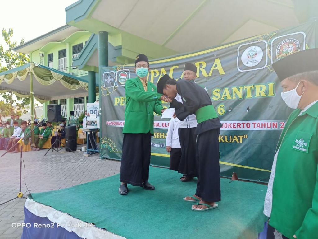 Upacara Hari Santri itu digelar di Kantor PCNU Kabupaten Mojokerto di Jalan RA Basoeni, Sooko. Santri itu naik ke tiang karena tali untuk menaikkan bendera merah putih terbelit.