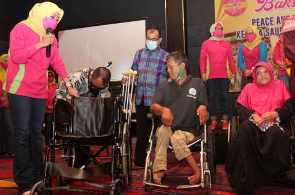Dalam baksos itu membagikan 2 kursi roda dan 10 tongkat bagi disabilitas yang membutuhkan.