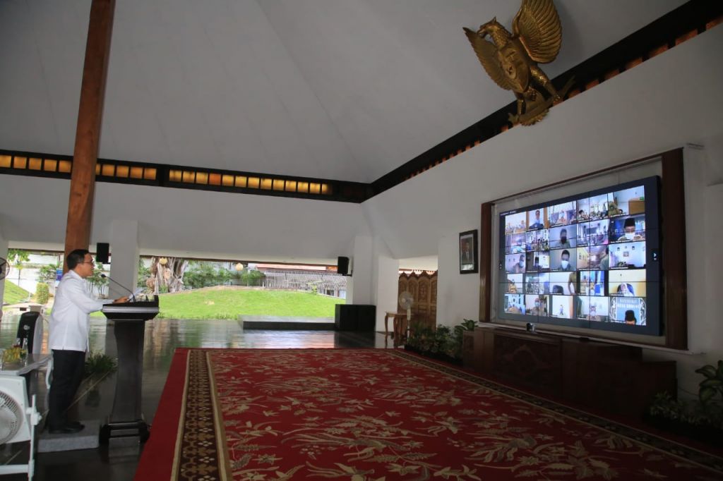 Anas hadir dalam forum rapat paripurna virtual tersebut melalui sambungan video conference dari pendapa Sabha Swagata Blambangan.