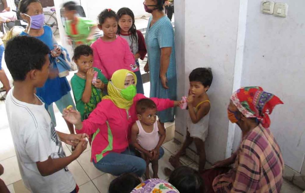 Kedatangan Asrilia Kurniati yang kerap disapa Yuk Lia ini disambut para penghuni rusun ada pria, perempuan, anak kecil dan lansia.