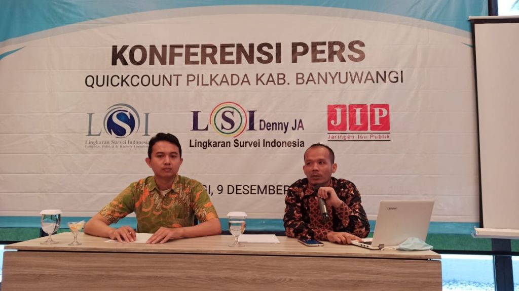 jatimnow.com - Hasil quick count Lingkaran Survei Indonesia (LSI) Denny JA menyebut pasangan calon (paslon) nomor urut 02, Ipuk Fiestiandani Azwar Anas dan Sugirah, menang di Pemilihan Kepala Daerah (Pilkada) Banyuwangi 2020.