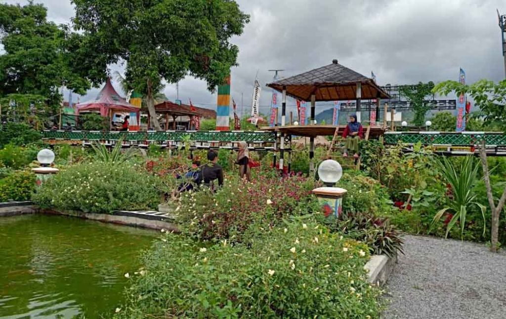 Wisatawan cukup membayar Rp 5 ribu untuk tiket masuk sekaligus parkir. Di tempat wisata ini, para wisatawan dapat berfoto dengan spot menarik dan terdapat jembatan gantung warna-warni.