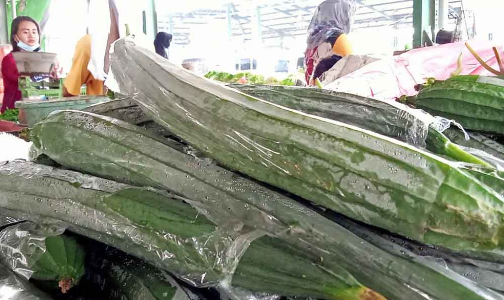 "Sejak ada di pohonnya, gambas ini sudah diselongsongi plastik. Ini digunakan untuk melindungi buah dari hama dan pestisida. Yang kedua agar buah bisa bertahan lebih awet," terang salah satu pedagang sayur di Blok F PIOS, Gunadi, Rabu (30/12/2020).