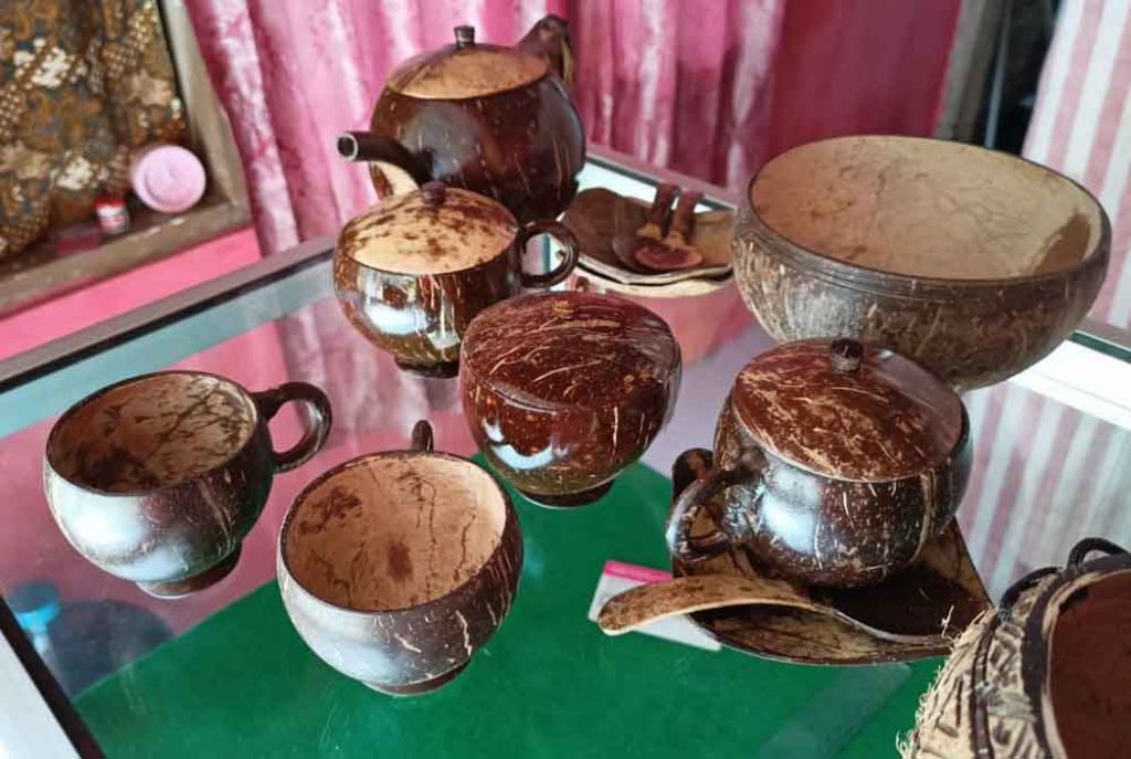 Ia menyebut, batok kelapa diambil dari kelapa yang utuh agar dapat diketahui kondisinya yang masih bagus dan dapat dibentuk menjadi alat rumah tangga.