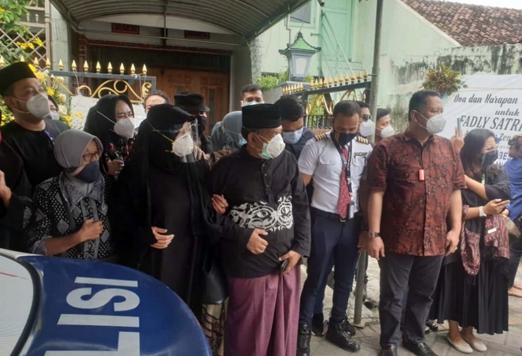 Duka menyelimuti keluarga Fadly Satrianto saat jenazah kopilot berusia 28 tahun itu tiba di rumah duka di Jalan Tanjung Pinang 72A, Surabaya, Jumat (15/1/2021).