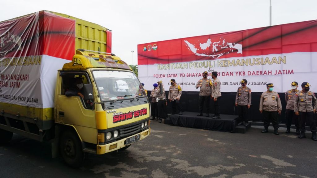 "Hari ini Polda Jatim dan Polres jajaran bersama Bhayangkari Polda Jatim mengirimkan bantuan sosial ke korban bencana alam di Kalsel dan Sulbar. Ada sekitar 25.165 paket bantuan, yang nanti akan kami serahkan ke Polda dan BPBD (Badan Penanggulangan Bencana Daerah) setempat," katanya.