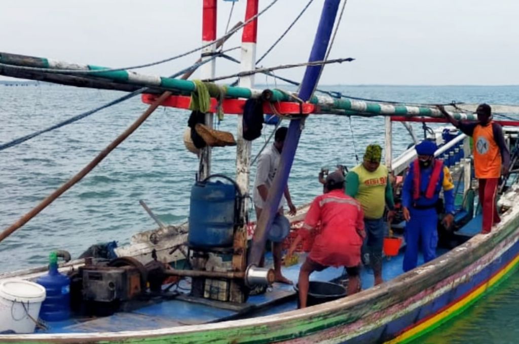 jatimnow.com - 12 nelayan asal Kecamatan Panceng diamankan Sat Polairud Polres Gresik di perairan Mengare alur pelayaran barat Surabaya.