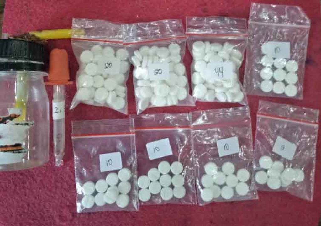 "Tersangka kami sergap saat baru pulang ke rumahnya. Kemudian kami geledah dan kami temukan barang bukti pipet kaca yang berisi sabu seberat 2,35 gram, alat isap sabu serta 193 butir pil koplo," jelasnya.