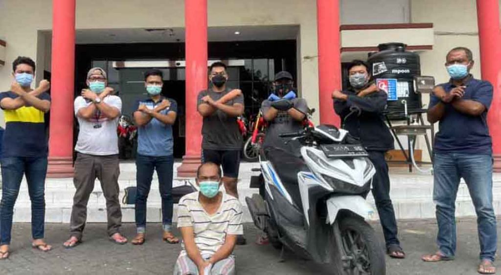 "Korban waktu itu sedang berteduh di warkop, karena lagi hujan. Motornya diparkir depan warkop, namun kunci kontak lupa tidak dicabut dan masih dalam keadaan menempel. Tiba-tiba datang dua orang pelaku yang mengendarai motor Vario langsung mencuri motor korban," kata Oki, Sabtu (6/2/2021).