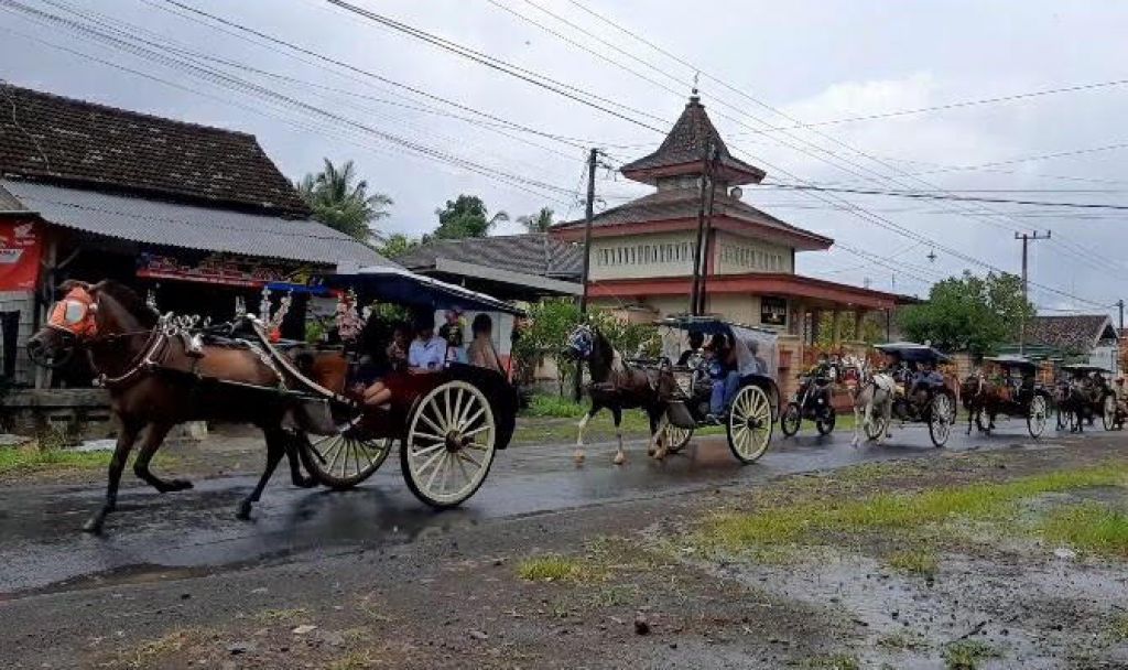 jatimnow.com - Puluhan delman di Banyuwangi menggelar pawai dan berkeliling ke kampung-kampung untuk membagikan masker dan mengingatkan warga agar taat protokol kesehatan (prokes) guna menekan penyebaran Virus Corona (Covid-19).
