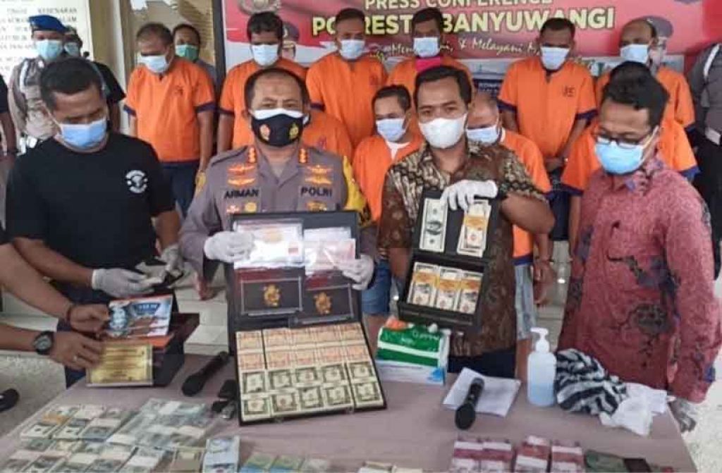 "Setelah kita selidiki ternyata ada. Kemudian kita periksa di kedutaan besar. Benar saja, uang-uang asing ini palsu," kata Kombes Pol Arman dalam pers rilis di Mapolresta Banyuwangi, Jumat (26/2/2021).