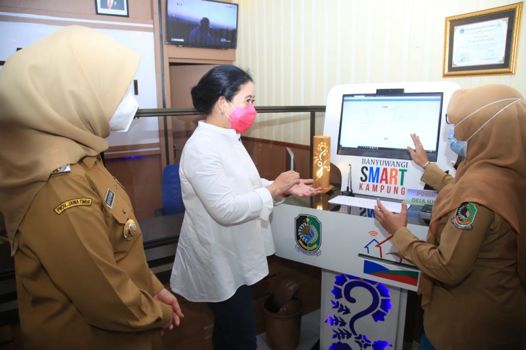 Puan mengapresiasi terobosan Pemkab Banyuwangi yang memaksimalkan pemanfaatan teknologi untuk melayani publik, untuk menyelesaikan sejumlah urusan kependudukan melalui program Smart Kampung.