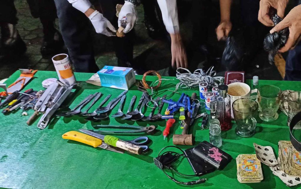 Selain sendok yang dimodifikasi menjadi sajam, penggeledahan juga menemukan kayu, gunting dan cutter (pisau pemotong).