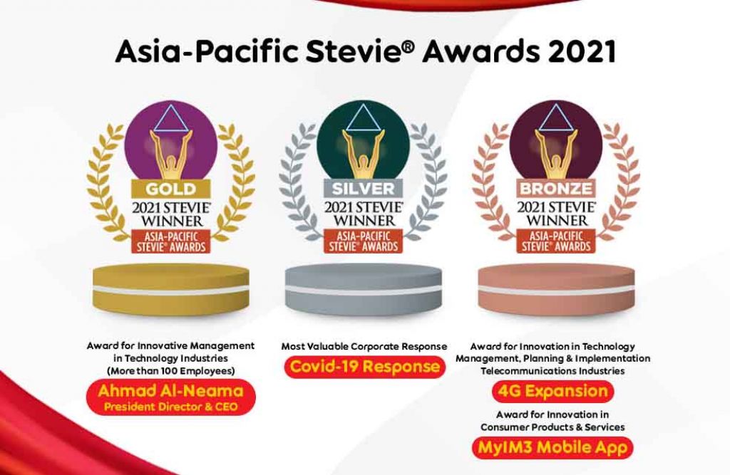 jatimnow.com - Indosat Ooredoo memenangkan empat Penghargaan di Asia-Pacific Stevie Awards 2021.
