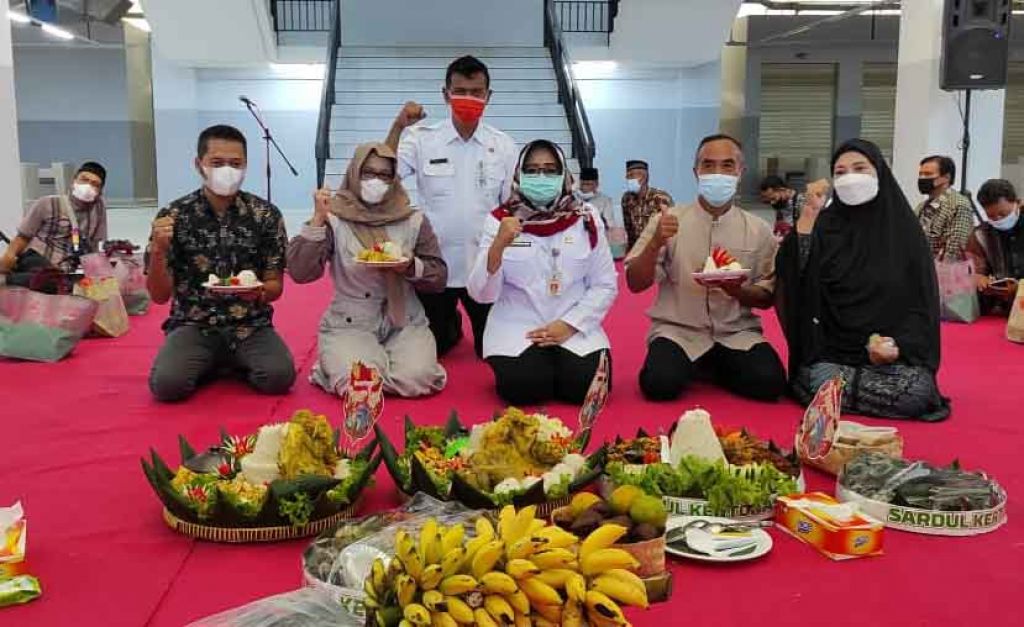 jatimnow.com - Dinas Perdagangan, Koperasi dan UMKM (Disperdagkum) Ponorogo dan paguyuban pedagang menggelar syukuran jelang boyongan ke Pasar Legi, Rabu (9/6/2021).