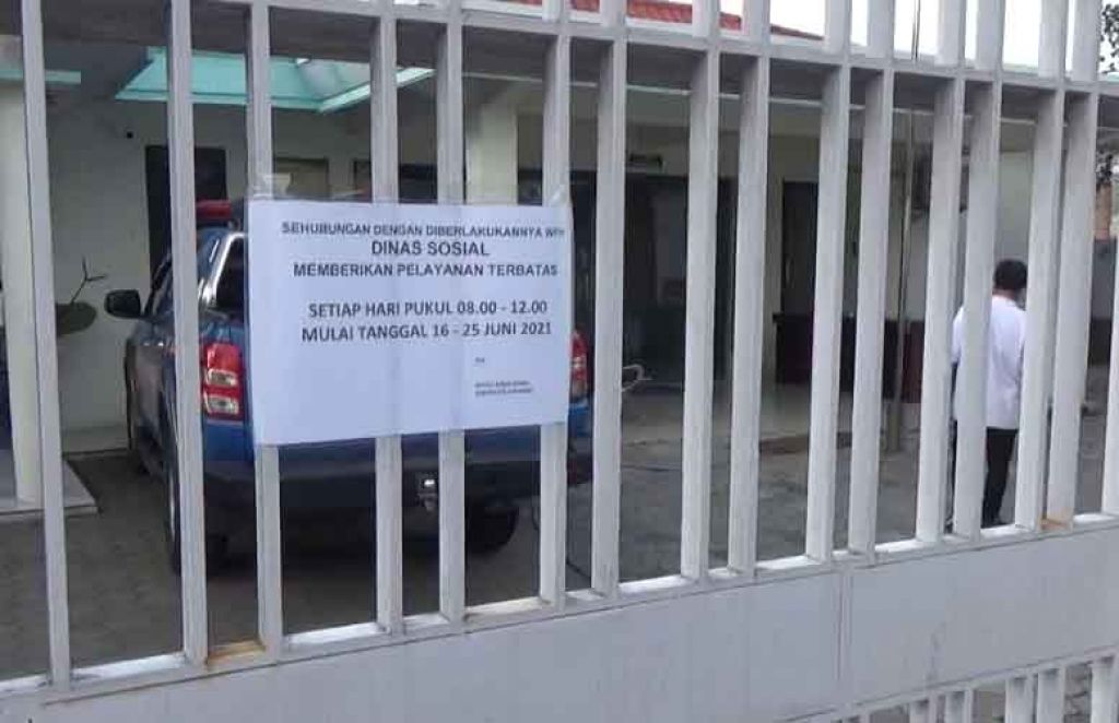 jatimnow.com - Kantor Dinas Sosial (Dinsos) Kabupaten Jombang memberlakukan work from home (WFH) setelah 11 pegawainya dinyatakan terkonfirmasi positif Covid-19.