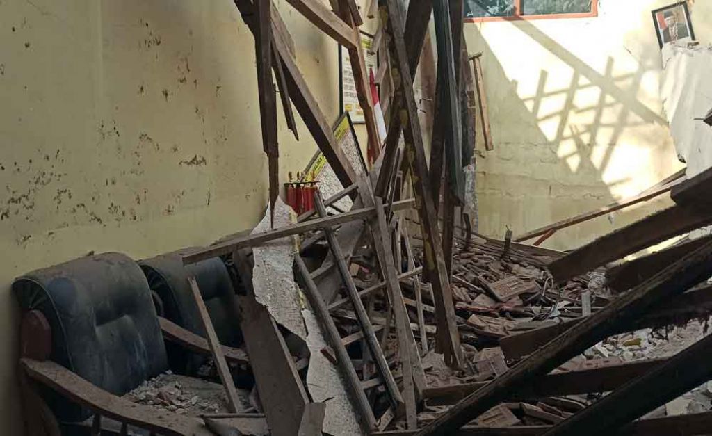Selain atap yang ambruk, terlihat tembok juga mengalami keretakan. Ketiga atap ruang sekolah di Desa/Kecamatan Babadan, Kabupaten Ponorogo itu sebelum ambruk telah lama disangga bambu.