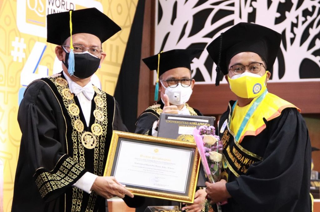 Pria yang berprofesi sebagai ojek online (ojol) itu lulus sebagai wisudawan terbaik dari S2 Fakultas Ilmu Sosial dan Ilmu Politik Universitas Airlangga (Unair) dengan predikat cumlaude.