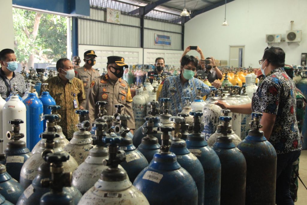 jatimnow.com - Pemkab dan Polres melakukan pengecekan untuk mengantisipasi kelangkaan stok oksigen di Kabupaten Madiun akibat melonjaknya pasien terkonfirmasi Covid-19.