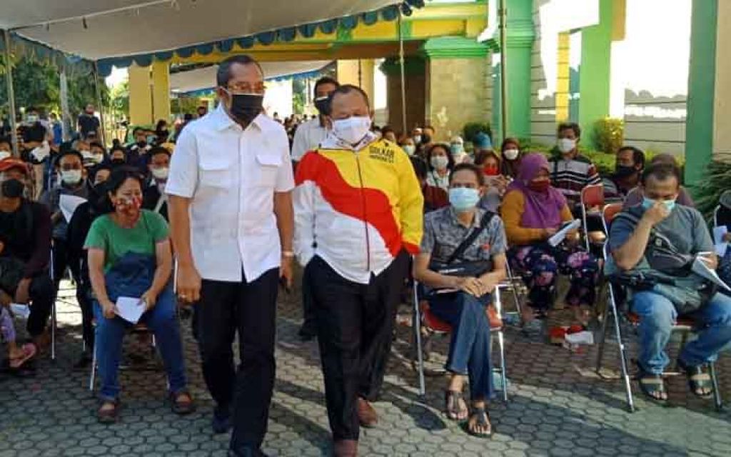 jatimnow.com - DPD Golkar Jawa Timur menggelar vaksinasi Covid-19 di Kantor DPD Golkar Jatim, Senin (26/7/2021).