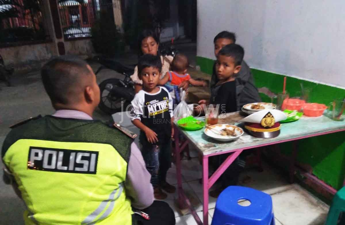 Petugas dari Sat Lantas Polres Ponorogo siaga membantu seorang ibu tersesat dengan membawa tiga anaknya yang masih kecil.