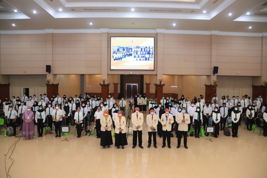 jatimnow.com - Sebanyak 1026 mahasiswa baru Universitas Wiaya Kusuma (UWK) Surabaya, mengikuti Upacara Pembukaan Masa Orientasi Mahasiswa (MOM) tahun 2021 yang dilakukan secara hybrid.