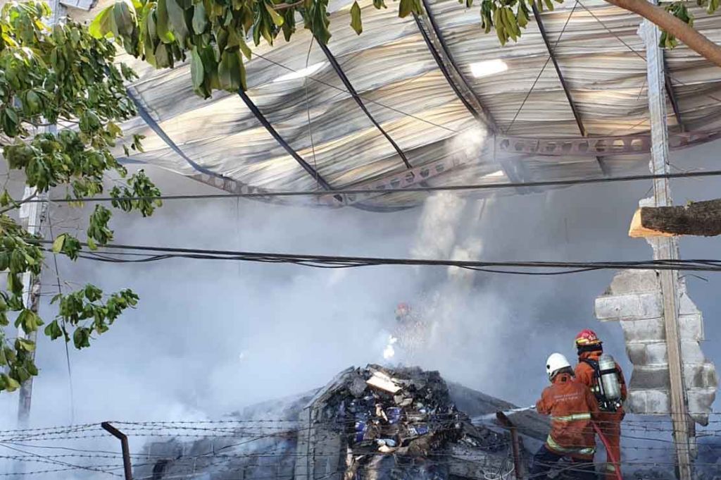 "Informasi dari penyewa gudang terdengar ledakan dari dalam gudang dan tiba-tiba terlihat api sudah membesar. Bahan yang terbakar adalah sebagian besar tumpukan kampas rem kendaraan motor," tulisnya.