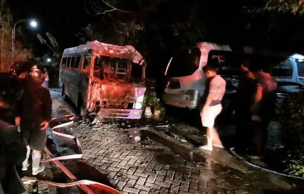 Saat mereka mengobrol, mendadak muncul api dari depan kendaraan. Api yang diduga berasal dari korsleting listrik itu mengakibatkan mobil Elf hangus. Untuk memadamkan api, 2 unit mobil dikerahkan.