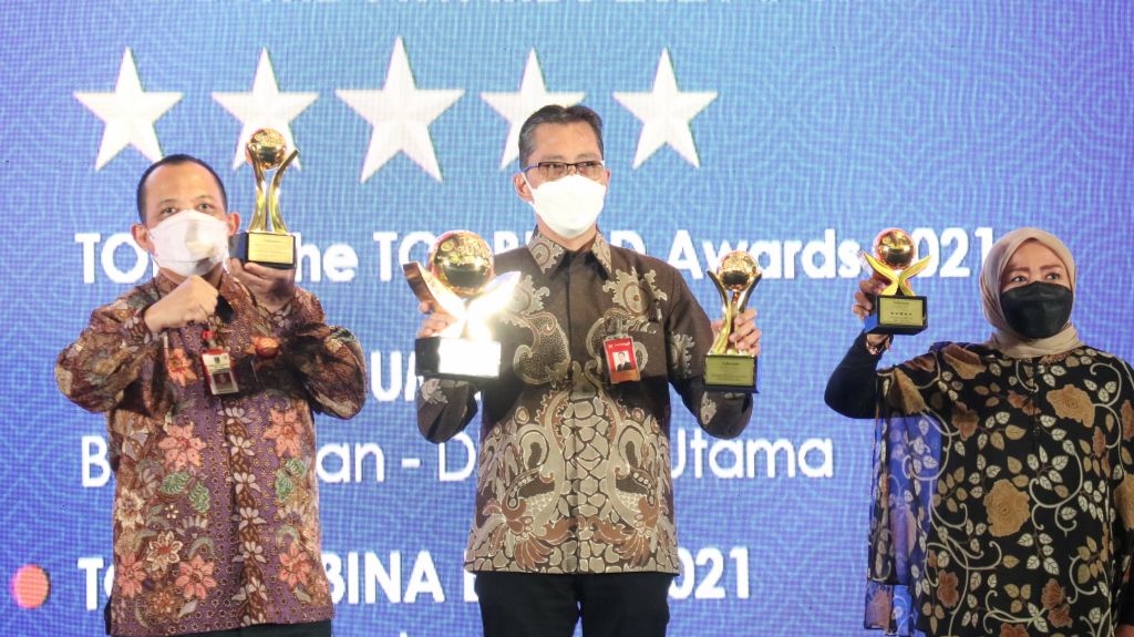 Bankjatim berhasil meraih penghargan dalam 3 kategori yaitu, TOP of the TOP BUMD 2021 dan TOP BUMD 2021 #Stars 5, serta penganugerahan kepada Direktur Utama bankjatim, Busrul Iman sebagai TOP CEO BUMD 2021.