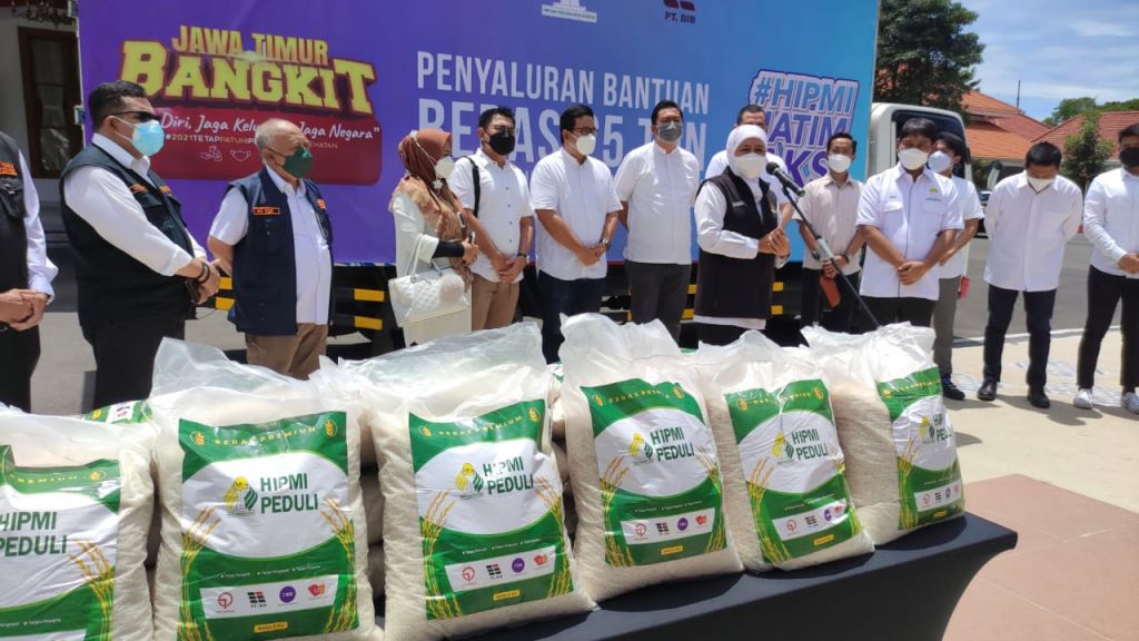 Pada kesempatan tersebut, Khofifah juga mengucapkan terima kasih atas bantuan beras yang diberikan HIPMI Jatim dan akan disalurkan dengan sebenar-benarnya.