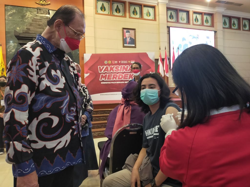 "Vaksinasi Merdeka berlangsung atas kerja sama dengan Polri khususnya Polrestabes Surabaya. Kuotanya sekitar 3.000 vaksin. Alhamdulillah pelaksanaannya berlangsung dengan lancar dan baik," kata Prof Widodo saat memantau vaksinasi di Bangsal Pancasila, Rabu (22/9/2021).