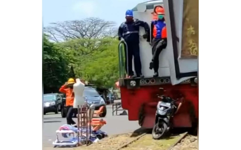 Viral Video Kereta Api Gilas Motor Parkir Sembarangan di Kota Malang