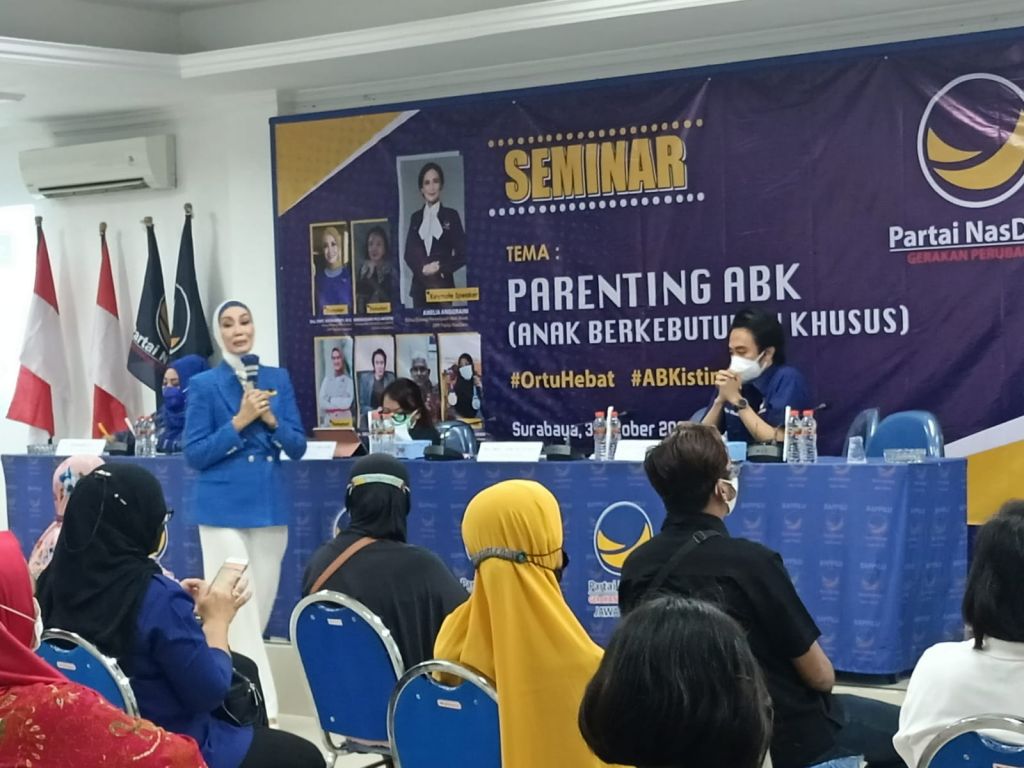 jatimnow.com - Partai Nasdem Jawa Timur (Jatim) menyatakan siap berjuang untuk anak-anak negeri dengan kebutuhan khusus (ABK). Hal itu dikemas dalam Seminar 'Parenting ABK' di kantor DPW Nasdem Jatim Jalan Arjuno, Surabaya, Minggu (3/10/2021).