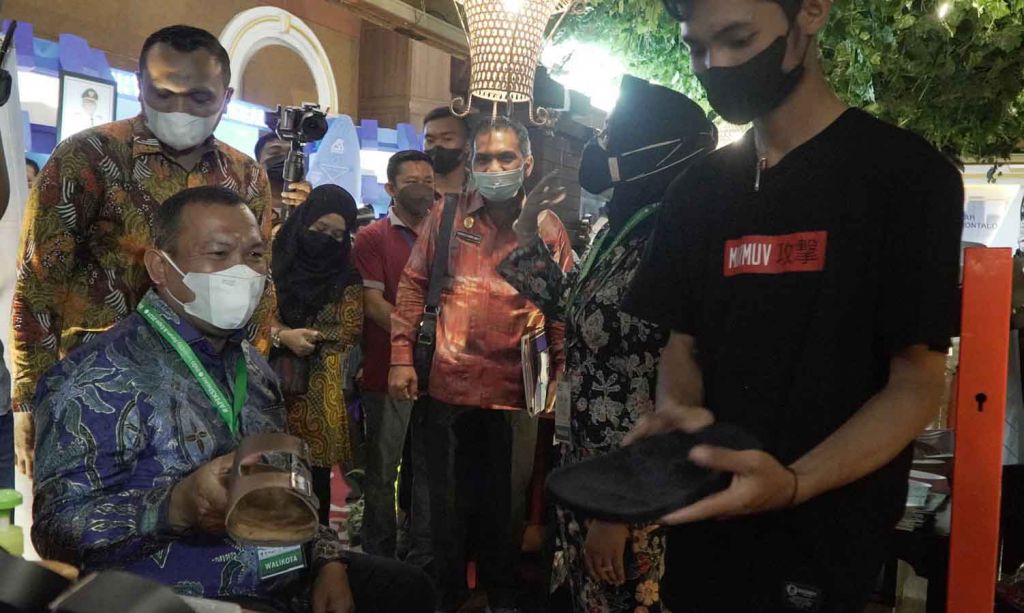 Dari kesekian produk, kerajinan sepatu dan sandal jenis birken stock menjadi incaran para kepala daerah karena memamerkan kelihaian pengrajin dalam membuat sandal satu jam langsung jadi.